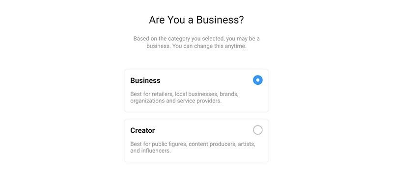 مرحله ششم: این صفحه نوع کار شما را به عنوان یک “Business” یا “Creator” سوال میکند. مرحله ششم مرحله آخر بوده و اکنون صفحه کاری شما ساخته شده است.